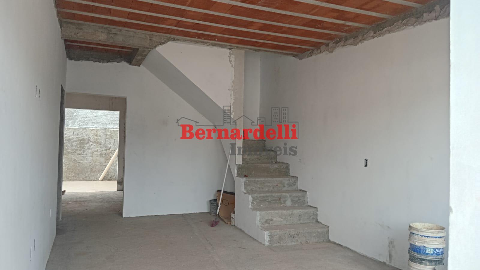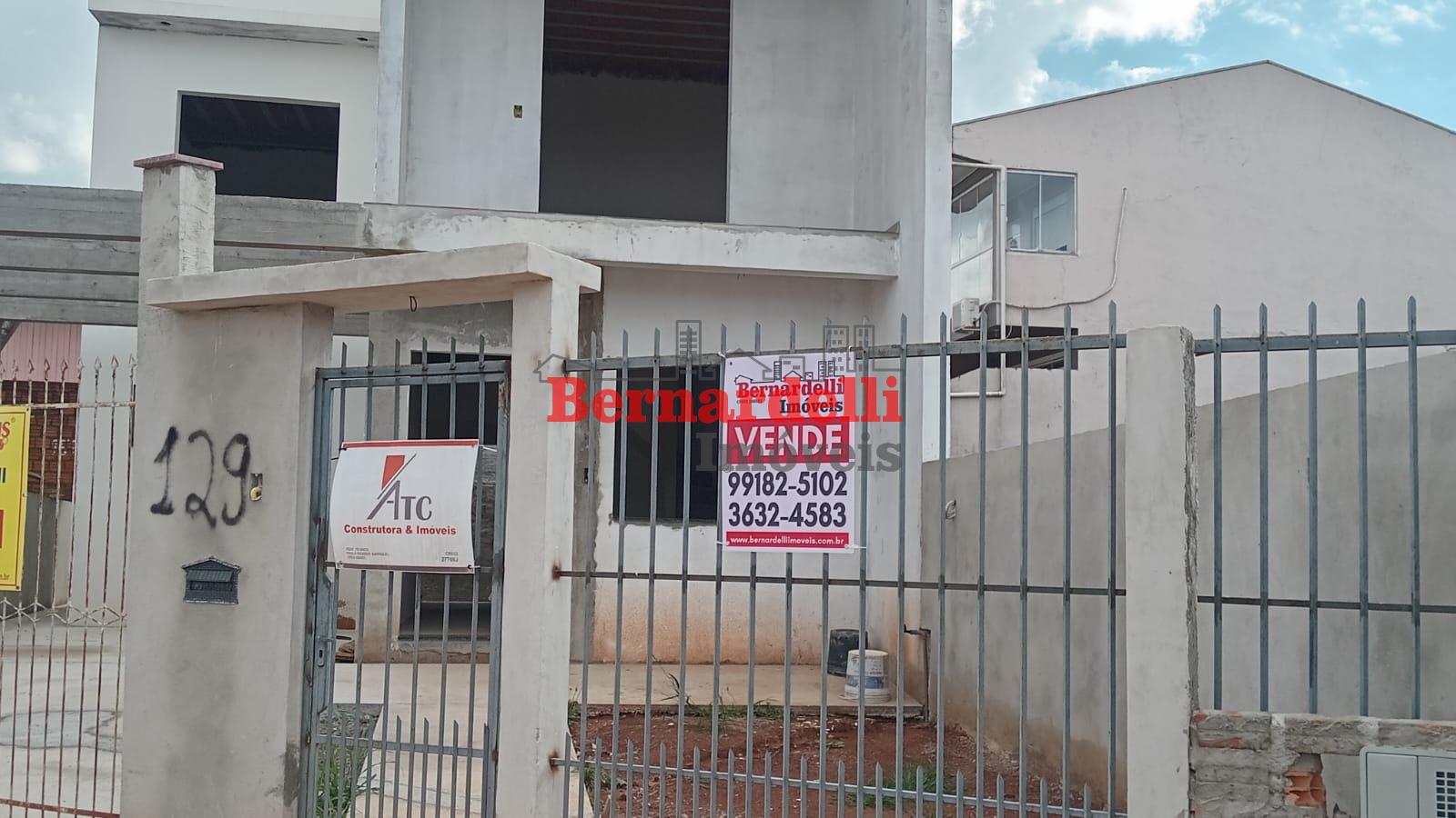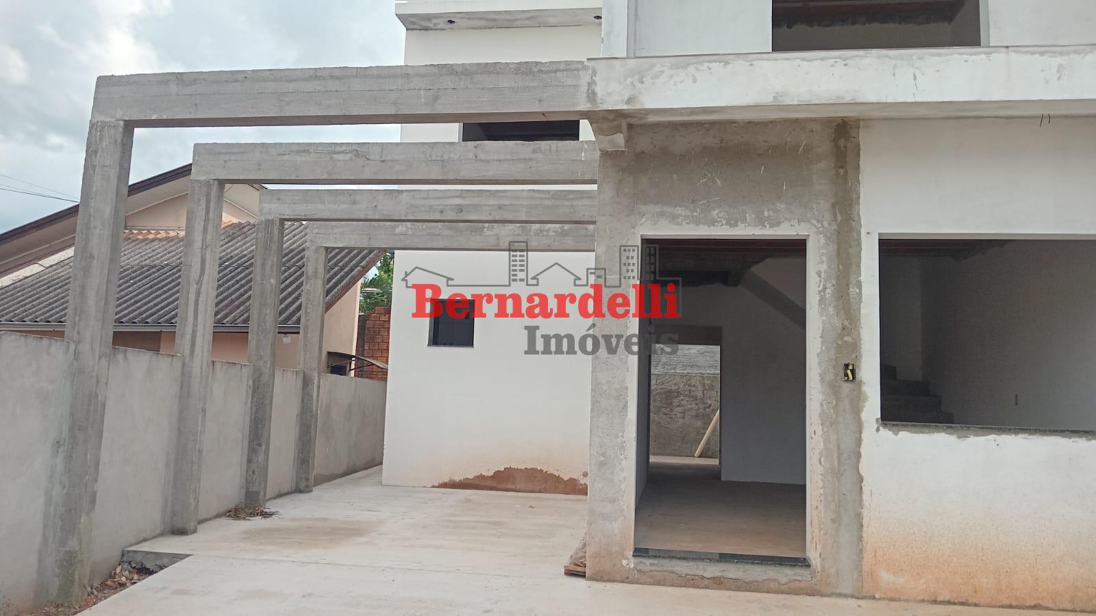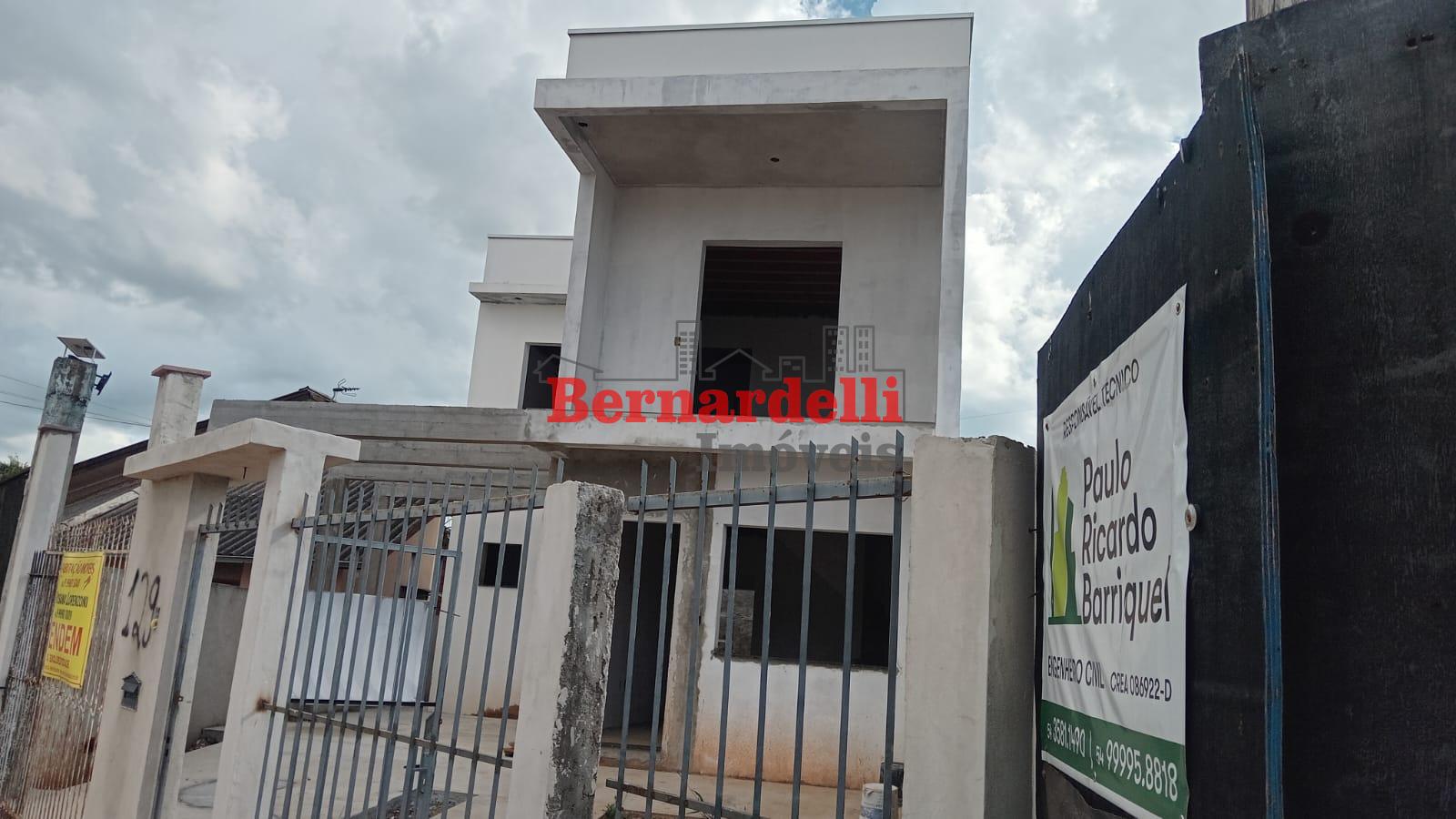 Casa de 2 pisos em construção, com 3 dormitórios sendo 1 suíte, e garagem.