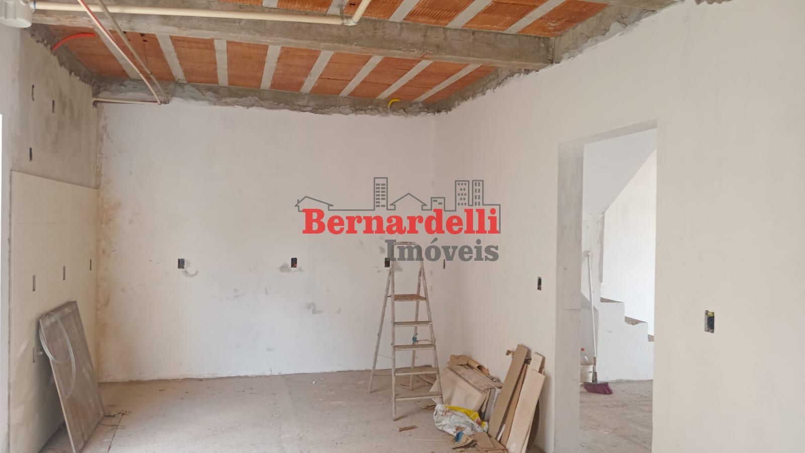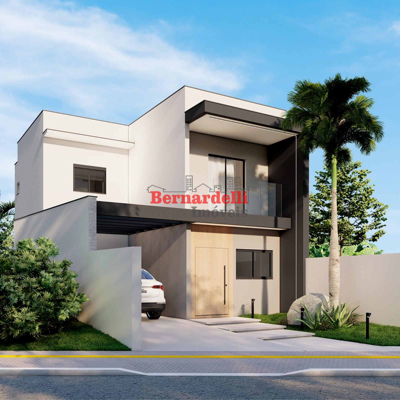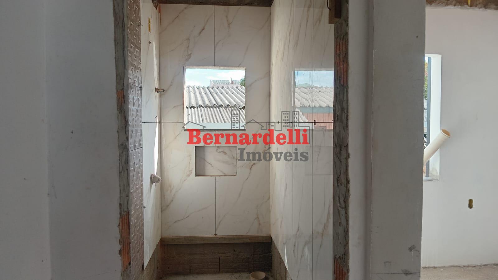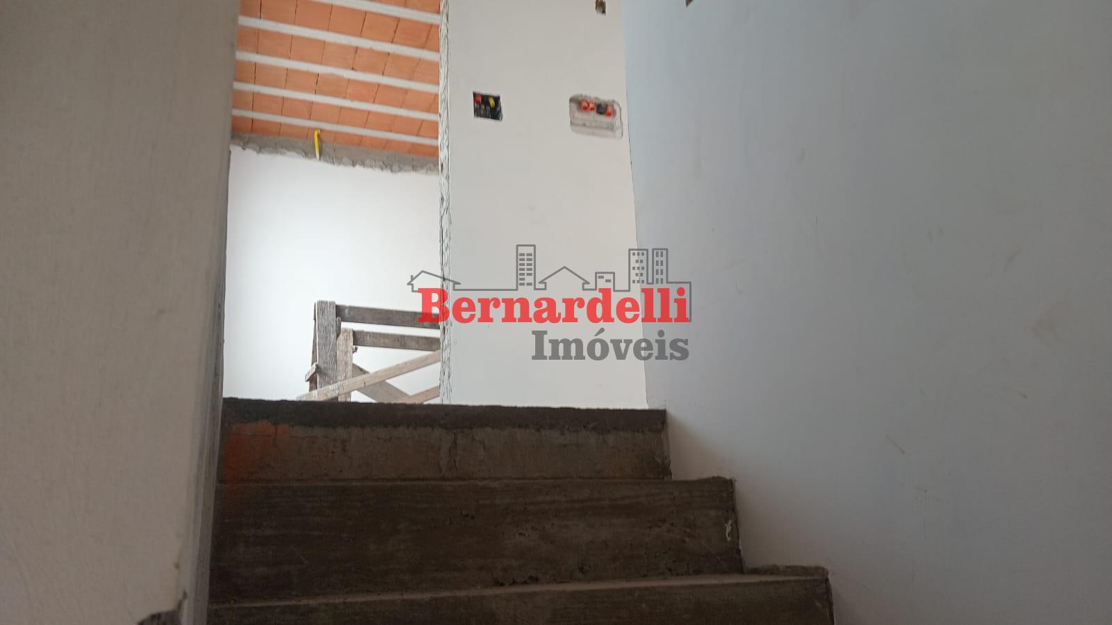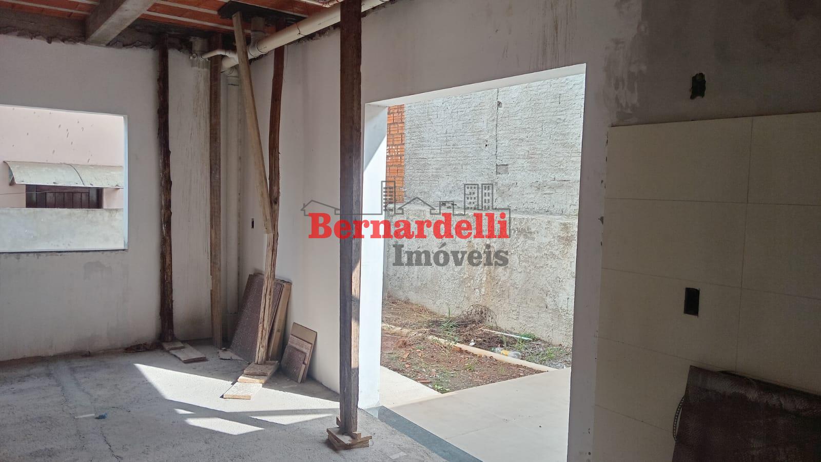 Casa de 2 pisos em construção, com 3 dormitórios sendo 1 suíte, e garagem.