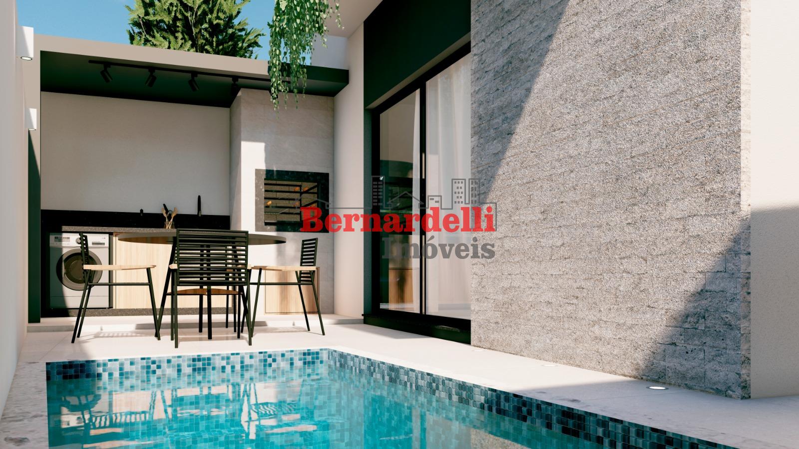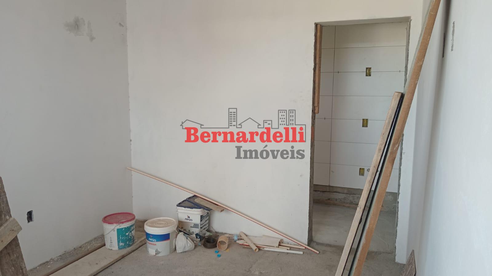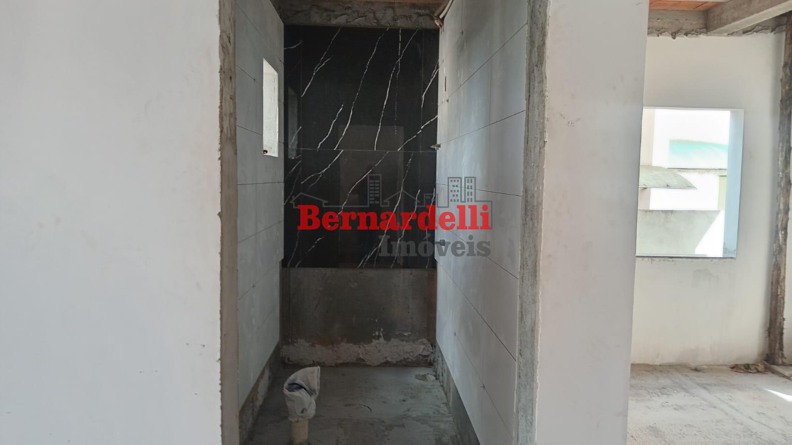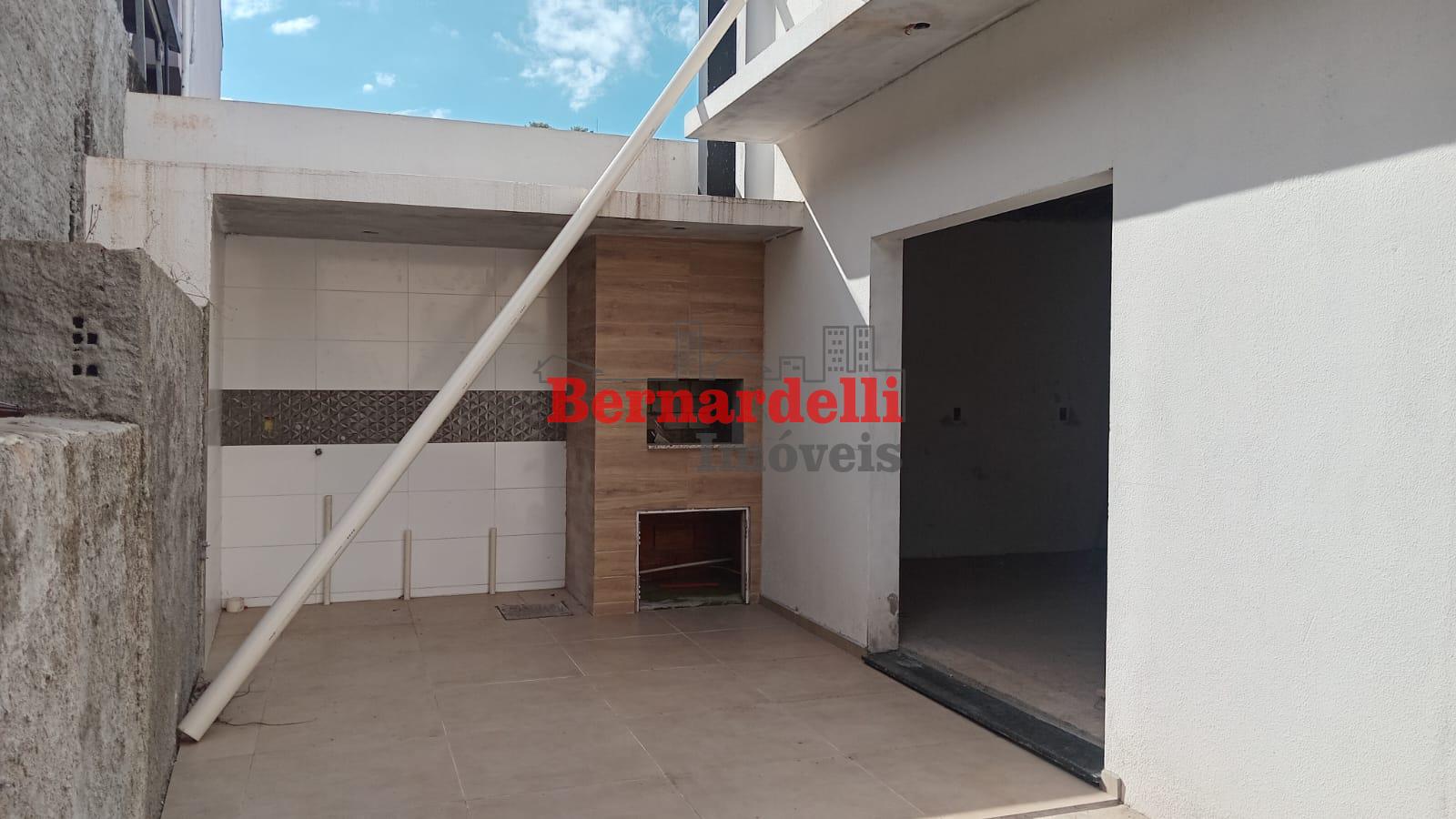 Casa de 2 pisos em construção, com 3 dormitórios sendo 1 suíte, e garagem.